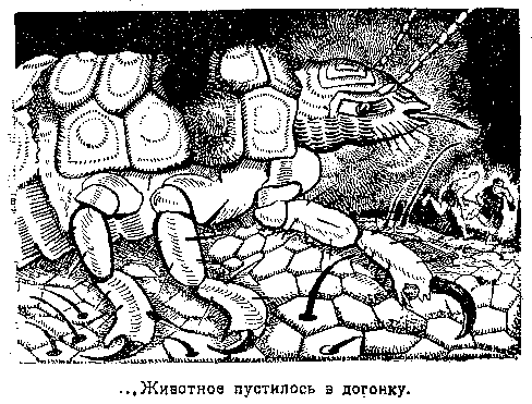 Напрасно. Надо было стоять. Теперь животное заметило их. Переваливаясь неуклюже и тяжело волоча грузный зад, оно пустилось вдогонку с тем же жалобным ревом на устах.