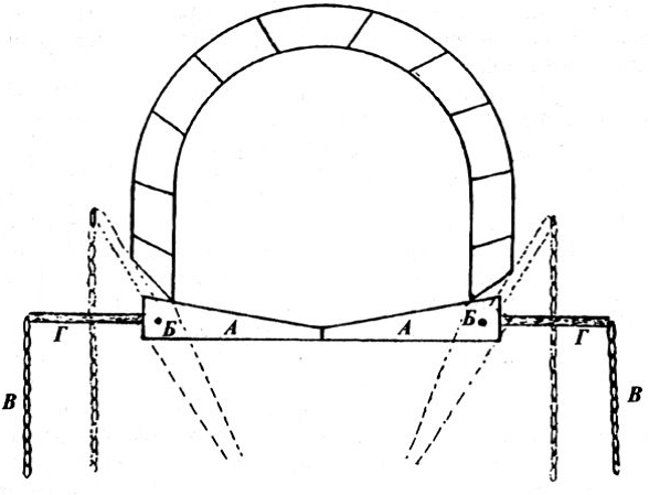 – Вот это плиты или глыбы (он указал буквы «А» на рисунке), которые, вежливенько пропустив нас в мешок, снова сомкнулись. Они вращаются на металлических осях (на рисунке буквы «Б») – помнишь тот скрип?.. Ну вот… Размыкаются они в силу собственной тяжести, когда цепи («В») отпущены; эти рычаги («Г») тогда становятся в положение, обозначенное у меня стрелками, – рычаги, конечно, заложены в стенах коридора… Теперь, – помнишь, как лязгало и визжало, когда мы проваливались?.. По-моему, это визжали цепи, заложенные в стенках нашей камеры – по двум сторонам ее. Очевидно, они идут вниз; поэтому я утверждаю, что под нами находится другая камера, откуда опускаются, когда надо, и снова натягиваются упомянутые мною цепи.