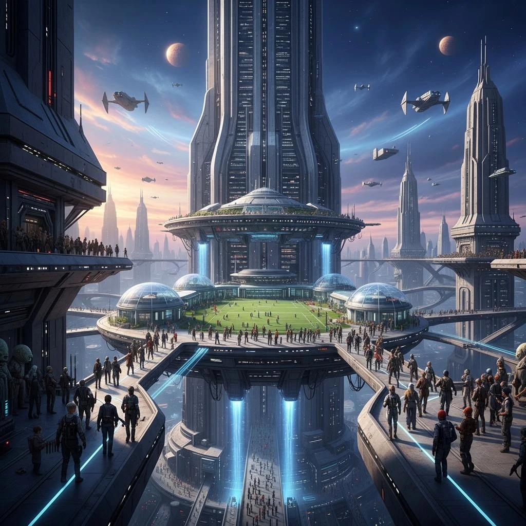 Здание института поражало своим величием и историей, которая буквально пропитывала каждый его камень. Построенное тысячи лет назад, оно представляло собой грандиозную конструкцию из темно-серого кореллианского камня и полированного дюрастила. Главный корпус возвышался на тысячу уровней , его фасад украшали барельефы, изображающие великих инженеров и изобретателей прошлого. Между колоннами были вмонтированы голографические панели, демонстрирующие достижения выпускников института – от первых межзвездных кораблей до современных дредноутов.
