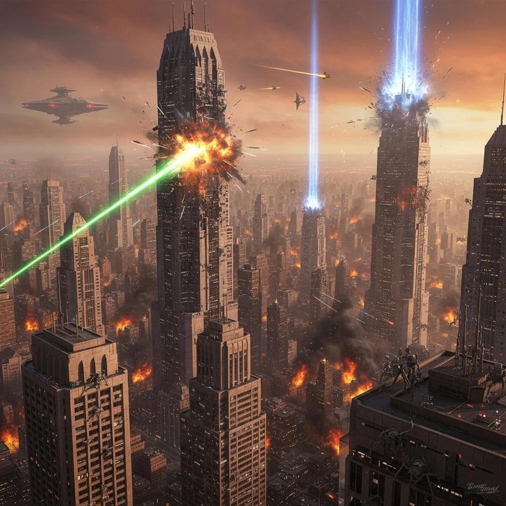 Над городом кружили дроиды-стервятники, их лазерные пушки прочерчивали в ночном небе красные линии смерти. Но это было не самое страшное. Страшными были десантные капсулы, которые падали на крыши небоскребов, словно смертоносный дождь.