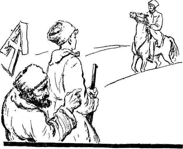 Подковы захрупали по дорожной наледи, жеребчик убыстрил шаг в гору, и фигура всадника тенью закачалась на фоне сумеречного снега балки.
