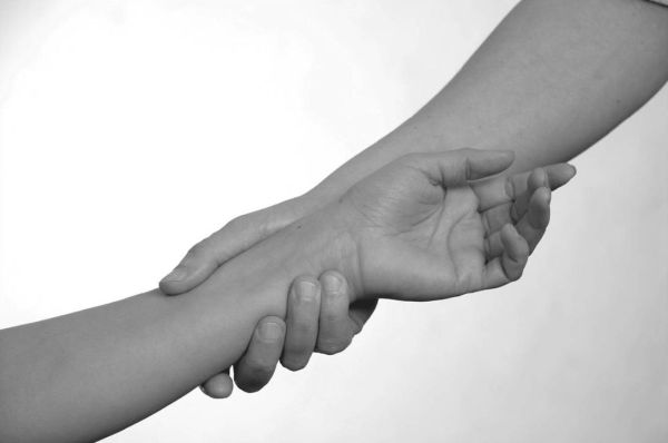 Доступ к Отцовым костям иной. Обхватите область лучезапястных суставов пациента своими кистями так, чтобы вы могли управлять движением кистей пациента (фото 4).