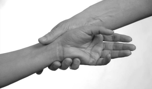 Возьмите предплечья пациента в свои руки таким образом, чтобы ритмогенная зона вашей кисти оказалась на тыльной стороне кисти пациента примерно на один сантиметр впереди лучезапястного сустава. Второй, третий, четвертый и пятый пальцы поддерживают предплечье снизу, а первый (большой) палец обхватывает его сверху. Удлините мысленно свои пальцы и достаньте ими до Богородичьих костей пациента. После контакта руки пациента придут в автоматическое движение, а вы начинайте не спеша исследовать позу и движения Богородичьих костей (не забывайте, что в понимании мастера скелет и кости – синонимы).