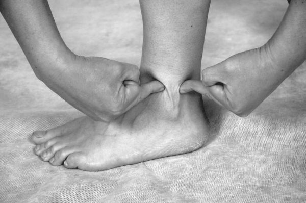 Необходимо найти такое положение приподнятых пальцев и пятки, чтобы уравновесить напряжение правой и левой частей тела. Целебное воздействие реализуется в момент баланса напряжений правой и левой частей тела мастера. Техника выравнивания телесно-энергетических усилий является ключевой при манипуляциях с костями. Ей необходимо уделить время и отработать ее до автоматизма. Растяжению-сжатию подвергают не всю кость, а отдельные участки. Выбор участка для растяжения-сжатия кости делайте так: над поверхностью кости медленно проведите средним (третьим) пальцем кисти. Над поверхностью кости легко выявляются две удаленные друг от друга точки, над которыми палец прекращает движение и зависает.