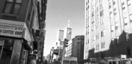 Рис. 2. Вид на башни-близнецы в момент крушения первого самолета