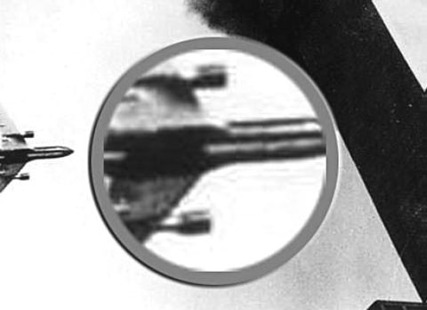 Теперь вспомним про таинственную вспышку, отчетливо видную на фотографиях. Полагаю, что вдумчивый читатель теперь и сам может предположить, что это такое. Поскольку самолеты были военными – а мы теперь имеем все основания так утверждать, – то эта вспышка, вероятнее всего, являлась пуском реактивного снаряда, который гарантированно инициировал бы взрыв топлива в авиалайнерах. Что же касается утолщения, то оно вполне могло быть либо пусковой установкой для ракеты, либо дополнительным баком с горючим, либо еще чем-то... совершенно не похожим на арабского террориста с канцелярским резаком.