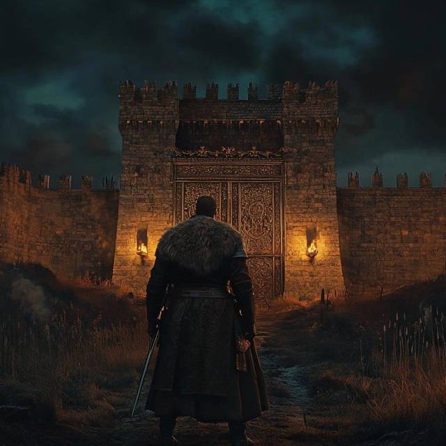 И тут я увидел как у самых ворот, пропущенный стражей, стоял могучий богатырь. Высокий, широкоплечий, с густой русой бородой и цепким взглядом. Он был одет в простую, но добротную кожанную броню, на боку висел меч, а за спиной – щит.