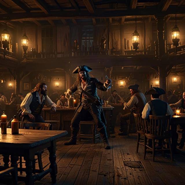 Внутри было тесно и душно. Дым от трубок висел под потолком, как туман, а запах рома, пота и жареного мяса забивал ноздри. Я протолкался к стойке, лавируя между пьяными моряками, которые орали песни или дрались за монету. Хозяин – жирный тип с красным носом – плеснул мне рома в мятый стакан, не спрашивая и я кивнул, бросив ему дублон. Напиток обжег горло и я оглядел зал. Тут было все, что нужно Тортуге: пираты с саблями, шлюхи с усталыми глазами, торговцы с хитрыми рожами. Я прикинул, с кого начать, когда заметил парня у дальнего стола.