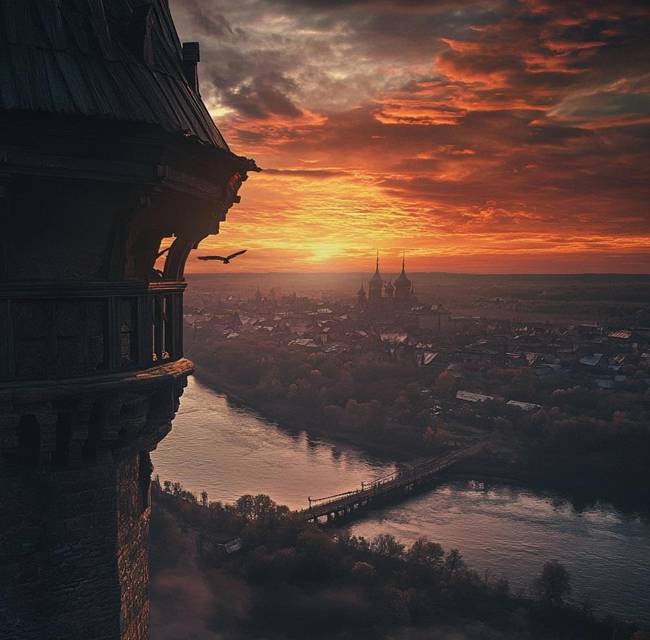 Ветер рванул сильнее, принося с собой запах сырой земли. Я смотрел, как воины внизу натягивают шатры, выстраивают ряды копий, готовят лестницы. Их тысячи – больше, чем я ожидал. Черные вороны на знаменах казались живыми, будто готовились клевать мою дружину. Добрыня стоял справа от меня, щурясь против ветра, его рука лежала на мече.