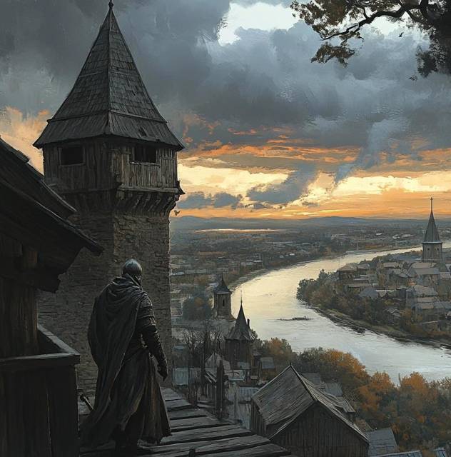 Когда я добрался до восточной стены, то замер, вцепившись в холодный камень. На реке, качались ладьи – длинные, узкие, с вырезанными драконьими головами на носах. Десятки, как сказал Алеша, а может, и больше. Варяги высаживались на берег – бородатые, в броньках, с круглыми щитами и топорами. Их знамена были синими, с белым крестом, а над всем этим возвышалась фигура в богатых доспехах, с длинным мечом на поясе. Он стоял на одной из ладей, отдавая команды, и что-то в его осанке, в том, как он двигался, заставило меня напрячься.