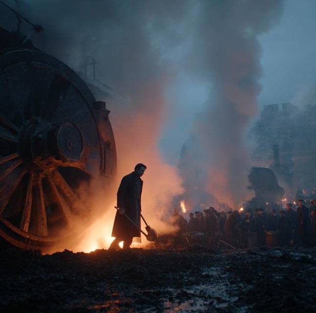 Его механики, ежась от холодного ветра, принялись вытаскивать из телег и складывать на подстеленную парусину детали паровой машины. При виде блестящих на свету деталей толпа оживилась.