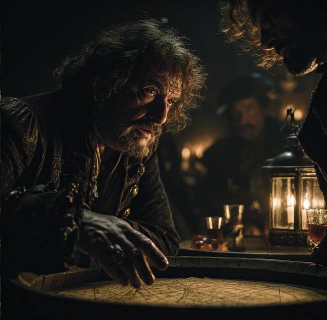 Я разложил на бочке карту – подлинную, XVII века, из архивов Петра. Он склонился над ней, и его пальцы с неестественно длинными ногтями благоговейно коснулись пергамента.