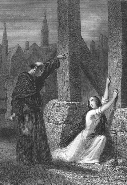 – Так умри же! – вскричал он, заскрипев зубами. Она увидела его страшный взгляд и хотела бежать. Он поймал ее, встряхнул, поверг на землю и быстрыми шагами направился к Роландовой башне, волоча ее за руки по мостовой. Дойдя до башни, он обернулся.