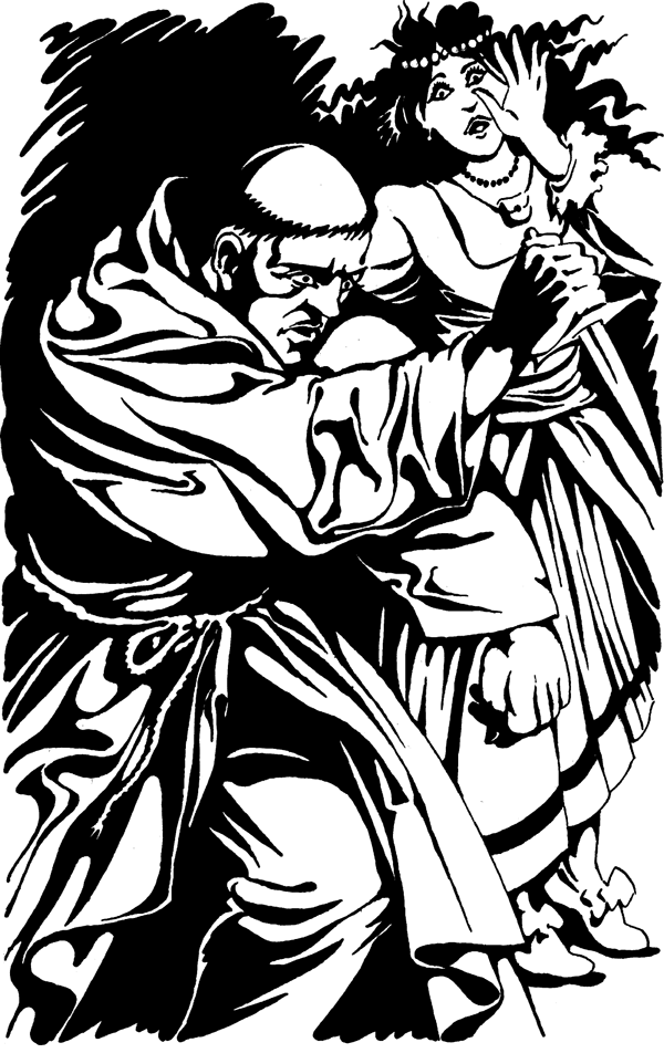 Священник, увидев это, нащупал концом пальца острие кинжала, спрятанного у него на груди.