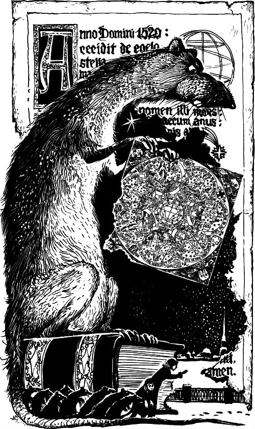 …«Коварное и мрачное существо это владеет силами человеческого ума. Оно также обладает тайнами подземелий, где прячется. В его власти изменять свой вид, являясь как человек, с руками и ногами, в одежде, имея лицо, глаза и движения, подобные человеческим и даже не уступающие человеку, как его полный, хотя и не настоящий образ. Крысы могут также причинять неизлечимую болезнь, пользуясь для того средствами, доступными только им. Им благоприятствуют мор, голод, война, наводнение и нашествие. Тогда они собираются под знаком таинственных превращений, действуя как люди, и ты будешь говорить с ними, не зная, кто это. Они крадут и продают с пользой, удивительной для честного труженика, и обманывают блеском своих одежд и мягкостью речи. Они убивают и жгут, мошенничают и подстерегают; окружаясь роскошью, едят и пьют довольно и имеют все в изобилии. Золото и серебро есть их любимейшая добыча, а также драгоценные камни, которым отведены хранилища под землей».