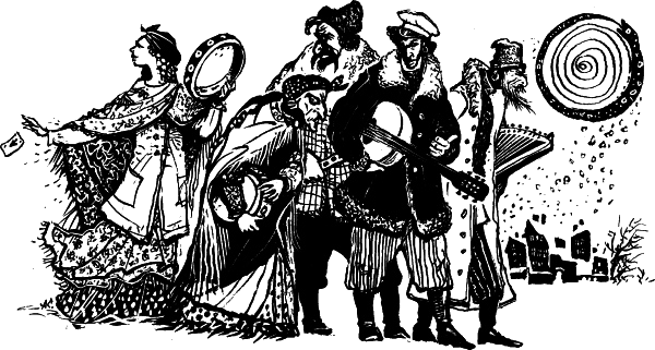 Старик нес цимбалы.