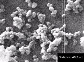 Рис. 13. Наноразмерные частицы кремния диаметром 14…50 нм ( distance40,7 nm– ориентировочная шкала размеров)