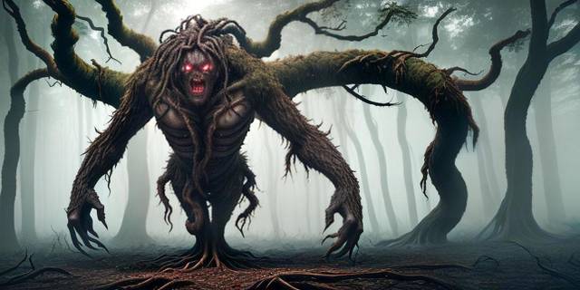 Древесные существа бросаются вперёд и замирают, запутавшись словно мухи в паутине.