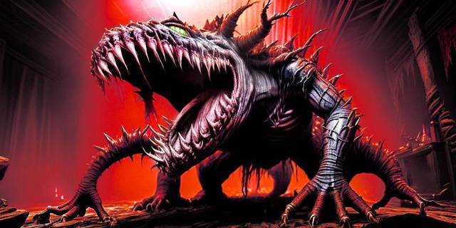Хлипкие остатки перегородки сносит могучим ударом. А из темноты на свет божий показывается гигантская морда.