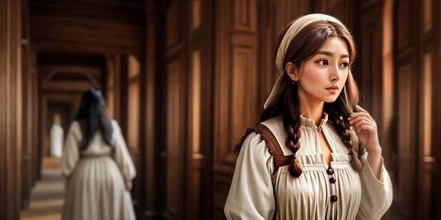 Совсем юная, такая, какой была много-много лет назад. Хлопает пушистыми ресницами, нервно покусывает пухлые губки и перебирает длинными пальчиками подол простого, такого же как у остальных служанок платья.