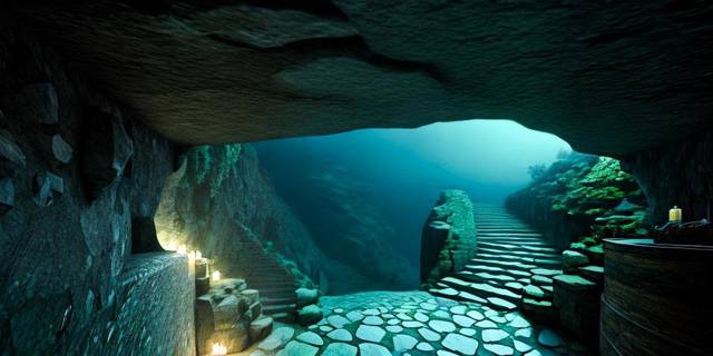 В отличие от окружающих подводных красот это место кажется испачканным. Бурый, словно пропитанный кровью песок усыпан костями разного размера. Устье пещеры заляпано какой-то чернотой, а ступеньки, уходящие вглубь, кажутся полуразрушенными.