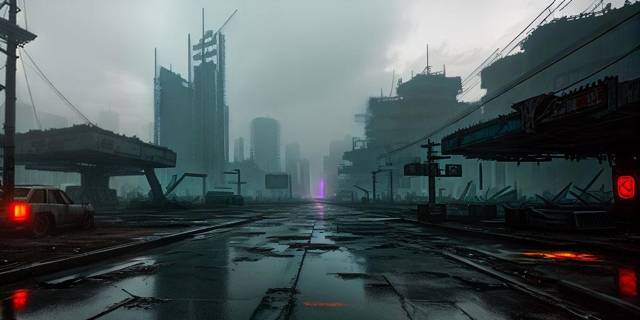 Неоновой подсветки и слепящей глаза рекламы сюда тоже не завезли. Только тёмно-серые дома, неряшливые кучи разноцветного металлолома и светло-серое небо, на котором нет и не может быть никакого солнца.