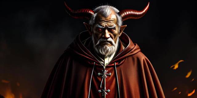 В мгновение ока фигура Вилиса вырастает по сравнению с изначальной вдвое. Белая хламида, в которую он одет, будто пропитывается кровью, превращаясь в багровую мантию. Кожа сереет, а по обеим сторонам головы проклëвываются красные бычьи рога. Между их острых, направленных друг на друга концов, вспыхивает огненный сгусток.