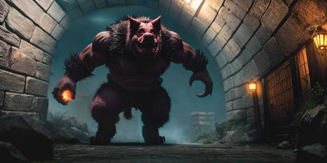 Гайла замолкает и прибавляет ходу. Мы с феей спешим следом. Но, дойдя до места, дружно останавливаемся. Впереди, в широком и крайне неуютном коридоре возвышается фигура человекообразного чудища. Весьма условно: оно, как и мой предыдущий соперник больше похоже на вставшее на задние лапы животное. В данном случае – поросёнка. Или, точнее, той самой собако-свиньи, которой я подпалил морду ещё в самом начале.