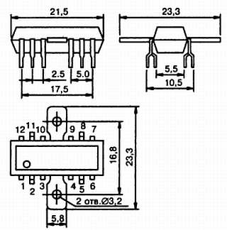 Рис. 18.5. Цоколевка и назначение выводов микросхемы К174УН7