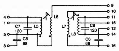 Доработка заключается в следующем. Вначале нужно от имеющихся контурных катушек L1 и L4 отмотать по одному витку, считая от нижнего по схеме вывода. После этого подпаивают конденсаторы емкостью по 180 пФ параллельно уже имеющимся С1 и С4.