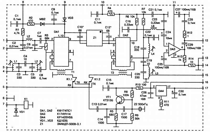 Рис. 25.10. Принципиальная схема основной платы трансивера SSB