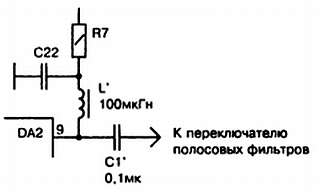 При изготовлении многодиапазонного трансивера для упрощения коммутации выходных диапазонных фильтров в схему узла А1 следует внести изменения согласно схемы рис. 25.13.