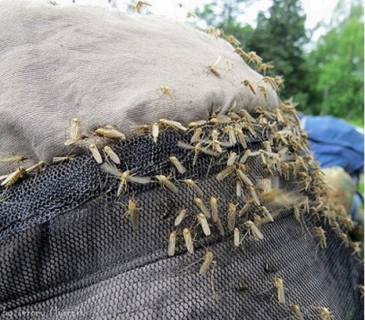 Накомарник практически не помогал – в нем душно, а, если снимешь капюшон, накомарник прижимался к лицу и шее и дальше все понятно…