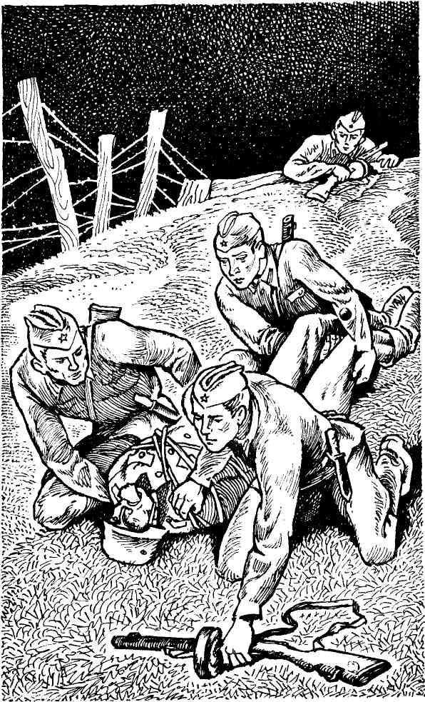 А между тем Ложкин действовал точно и напористо. Свенчуков потом рассказывал, как это у них получилось. В окопчик к немцу-ракетчику они проникли вдвоем с Ложкиным, как только фриц из него вылез. Парни-«тяжеловесы» притаились за бруствером. Стоило немцу вернуться и прыгнуть в окоп, один из них тут же навалился на него сверху и помог лейтенанту и Свенчукову бесшумно взять «языка». В рот фрицу воткнули кляп.