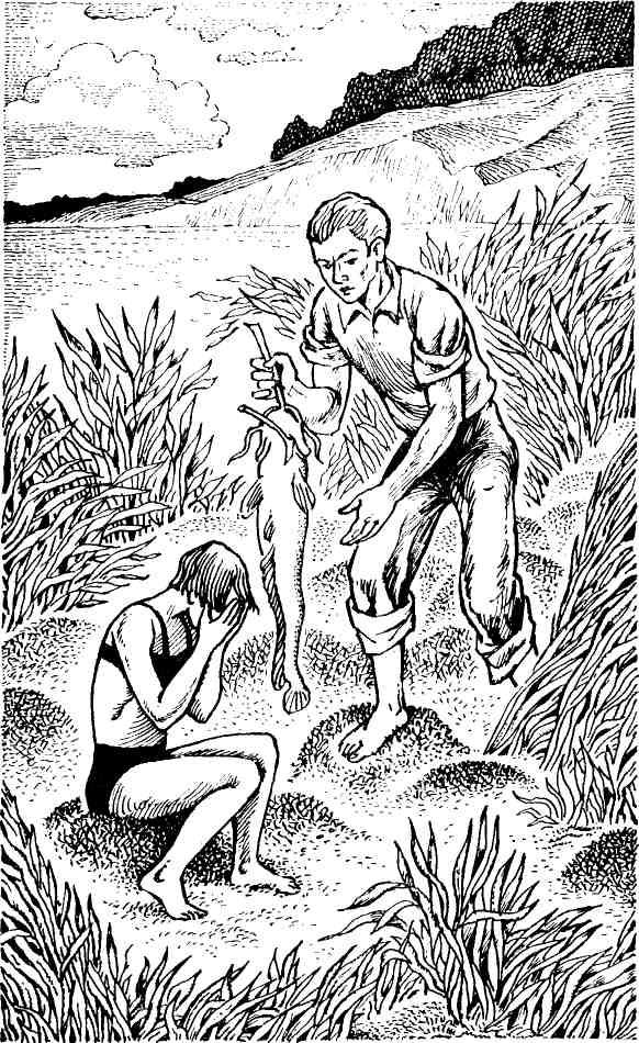 Посреди тропы стоял Андрей и загораживал ей дорогу. В руке он держал здоровенного, только что пойманного сома.