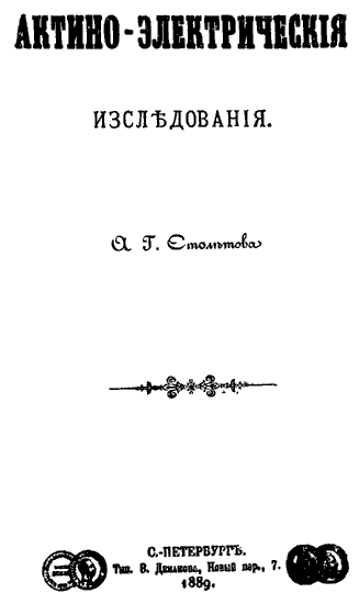 Титульный лист книги Столетова «Актино-электрические исследования».