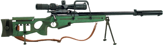 • снайперское оружие для условий бесшумной и беспламенной стрельбы в составе базового автомата, оптического прицела и прибора для бесшумной и беспламенной стрельбы;