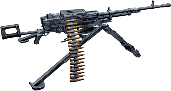 Питание пулемета патронами производится с помощью механизма подачи из металлической ленты.