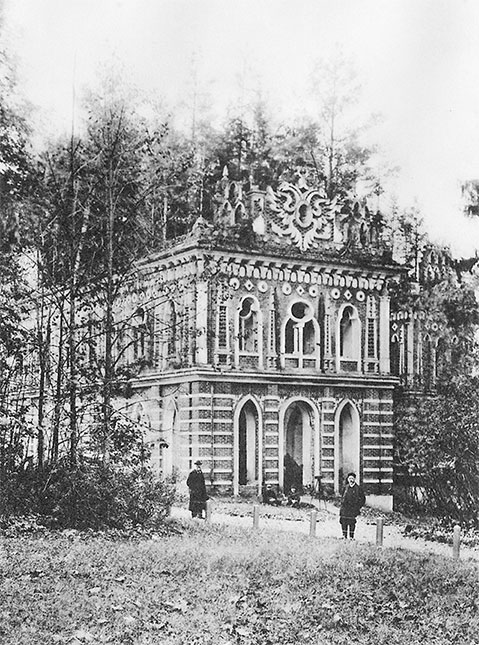 Выбор стиля тоже был неслучаен. Когда в ознаменование победы над турками было устроено в 1775 году торжественное гулянье на Ходынском поле, Баженов по велению императрицы возвел там сказочный городок. Его временные павильоны являлись тонкой стилизацией под восточную архитектуру – с минаретами, куполами, крепостями… Государыне и князю Потёмкину (с которым Екатерина уже была обвенчана) понравились и праздник, и необычный антураж. Архитектор был награждён и, что важнее, получил новую задачу – перестроить выполненное «в китайском вкусе» имение Кантемира в Царицыно.