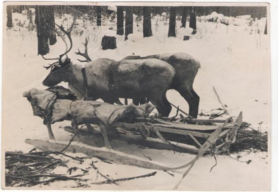 Оленьи нарты у «Юрты Бахтиярова». 1957 год.