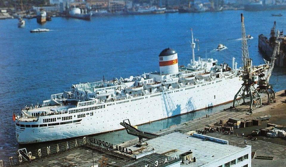 (Лайнер «Советский Союз» возле морского вокзала во Владивостоке)