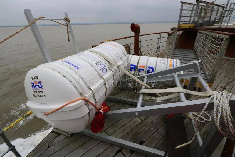 (Спасательный надувной плот с вытяжным фалом, за который успел уцепиться герой вывалившись за борт теплохода)