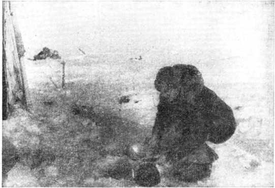 Снежные дома обтаяли, покосились, с кружевных стен и потолка слезинками стекает вода. Перед самым обедом, не выдержав жара примусов и тепла незаходящего солнца, завалилась снежная кухня. Со звоном попадали кастрюли, миски, кружки. Когда Иван Дмитриевич с Эрнстом подбежали, перед ними была уже снежная груда. Из-под нее выглядывало поверженное кухонное хозяйство. Где-то под слоем снега, под приземистой кастрюлей, на удивление всем, подавал голос непогасший примус. Пришлось все вытаскивать из-под снежных руин и переносить в белую парусиновую палатку.
