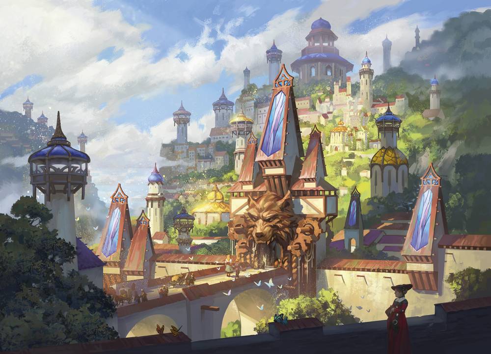 Подойдя ближе, дети увидели, что «крышами» на самом деле оказались цветные витражные купола двух– и трёхэтажных домов. Они словно магнитом удерживали на себе взгляд – на персиковых зданиях в лучах яркого солнца тысячами оттенков переливались цветные стёкла витражей: от густо-фиолетовых до прозрачно-сиреневых, от ярко-оранжевых до бледно-жёлтых, от тёмно-рубиновых до светло-розовых. Они поражали сочностью своей палитры в одних местах и скромной лаконичностью в других. Сложные и простые узоры, изображения животных, птиц, растений и бытовых сцен украшали эти сияющие полусферы, словно отдающие со светом незримую будоражащую магию.