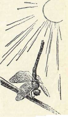 Смысл ее вполне ясен: при таком положении, когда брюшко нацелено на солнце, нагреваемая палящими солнечными лучами площадь тела очень мала. Накаляется лишь махонький кончик брюшка да небольшая задняя часть груди и спины, в основном же стрекоза, расположившаяся вдоль солнечного луча, находится как бы в тени, хотя и сидит на самом пекле. А крылья тепло почти не воспринимают: они стеклянно-прозрачные и потому совсем не нагреваются солнцем.