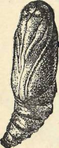 Проходит месяц. Снова достаю веточку с коконом – внутри него что-то гремит, перекатывается: значит, гусеница уже окуклилась. Любопытство берет верх: разрезаю плотную пелену ножницами. На стол выскальзывает тяжелая темно-коричневая куколка. Легкими выпуклостями уже вырисовывается головка, поджатые ножки, короткие крылышки. Будущая бабочка напоминает сейчас младенца, туго запеленатого по рукам и ногам, ничем не похожего на лютое зеленое страшилище.