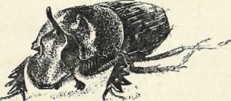 Однажды я собрал несколько таких жучков-коротышей и принес домой живыми. Разглядел в лупу – и удивился. Жуки обладали многочисленными и остроумными по устройству землеройными орудиями. Голова жука – ни дать ни взять лопата, широкая, плоская, заостренная спереди, со слегка загнутыми вверх краями. У самки поперек головы – невысокий валик, зато у самца этот валик вытянулся назад в длинный, загнутый кверху, плоский рог – своего рода отвал у плуга. Спинка жука высокая, с крутым горбом спереди, брюшко – очень короткое, так что последняя пара ног находится совсем сзади туловища, не так, как у других жуков. А передние ноги широкие, сильные, с большими острыми зубцами снаружи – наверное, уж очень ловко такими ногами землю рыть.