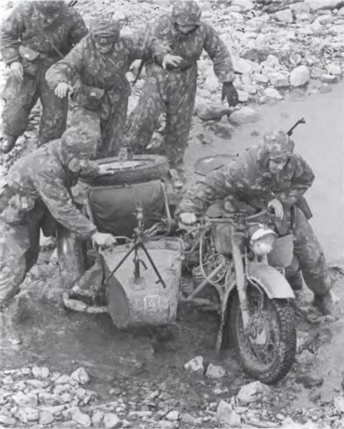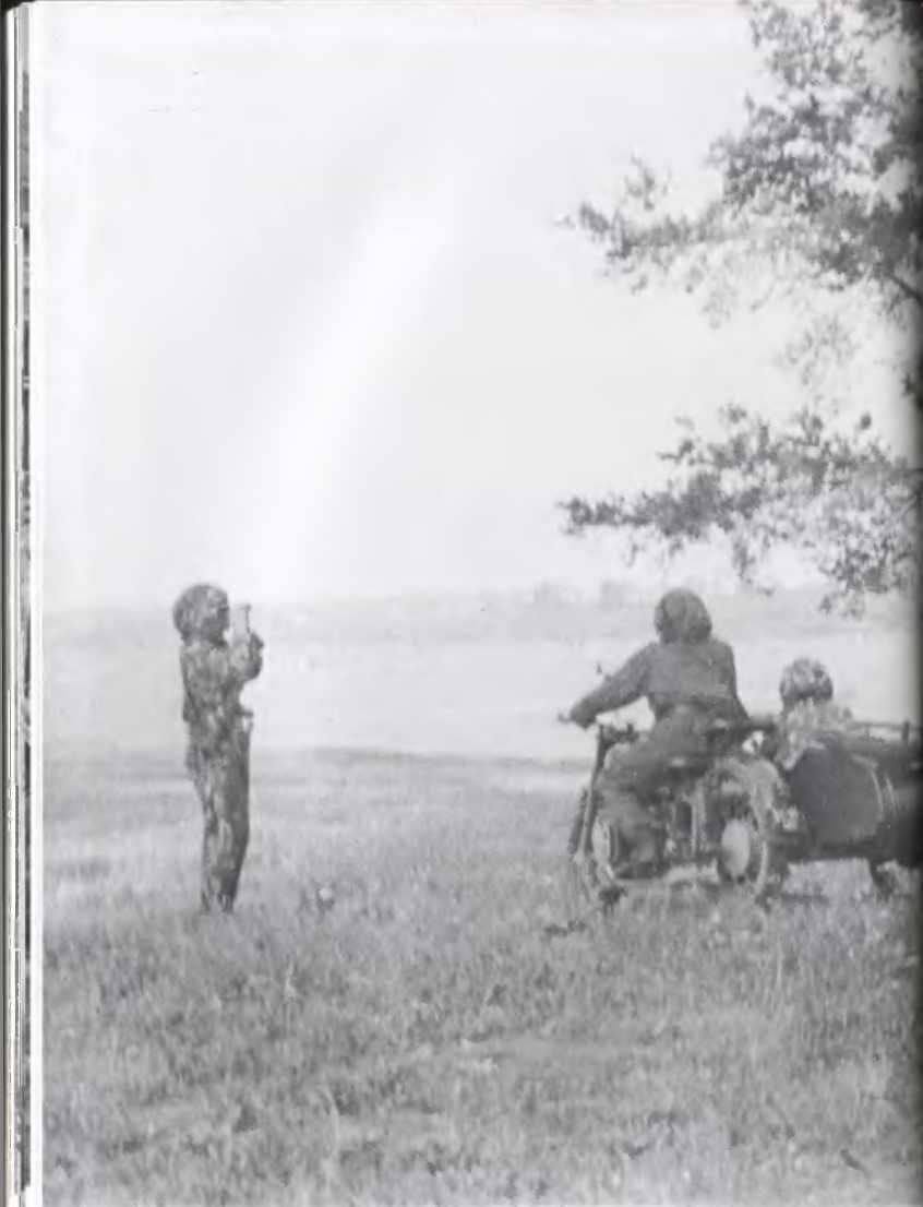 Командир разведывательной группы отсылает донесение в штаб с разведчиками-мотоциклистами (1967 год).