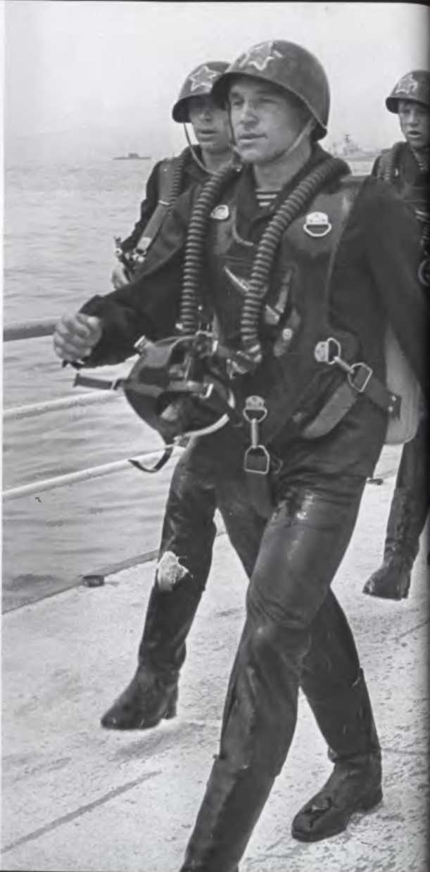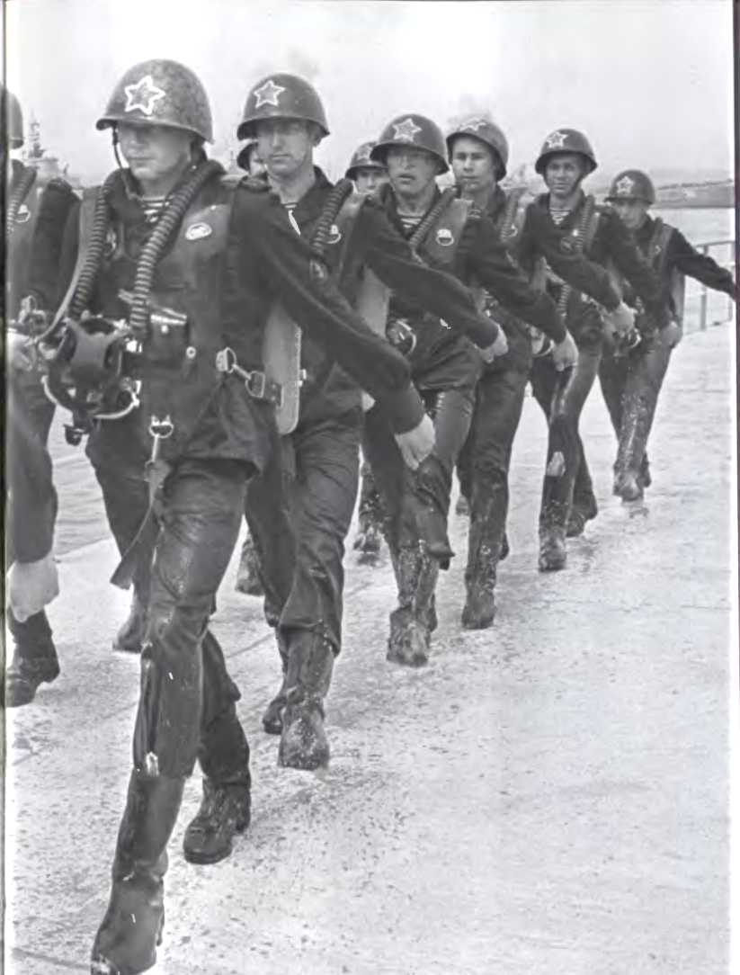 Отряд бойцов диверсионно-разведывательного подразделения Тихоокеанского флота ВМФ СССР проходит торжественным маршем в День Военно-Морского Флота (Владивосток, 24 июля 1972 года)