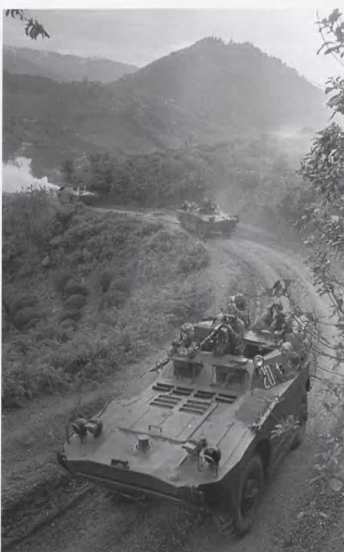 Разведывательный взвод на трех БРДМ выдвигается на выполнение боевого задания на тактических учениях (1965 год).